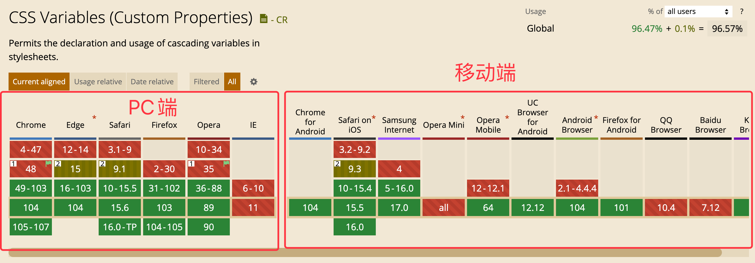 如图所示,移动端基本所有系统自带浏览器都支持CSS变量。